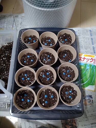 雪が消えないので、とりあえず土や資材を作業地点まで運んだり、植える物の育て方を調べたり、種まき出来そうなものからまき始めました。 ↓スナックエンドウ、ネモフィラが最初に行けそうだったので播種。 ネモフィラが、嫌光性なのかとか、発芽温度もいろい…