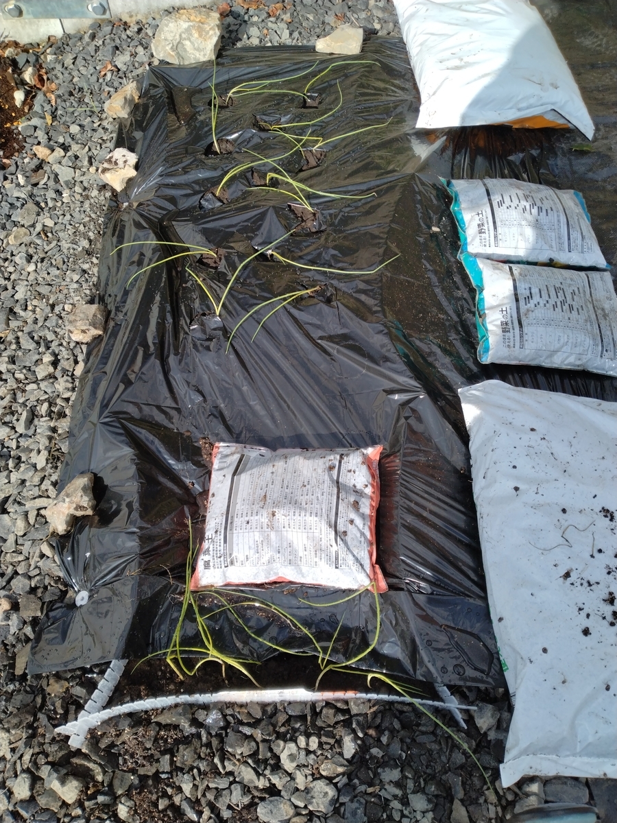 ネットで購入した黒土と日向砂を使って、玉ねぎを地植えしてみました。量が足りず、また黒土を購入することに。