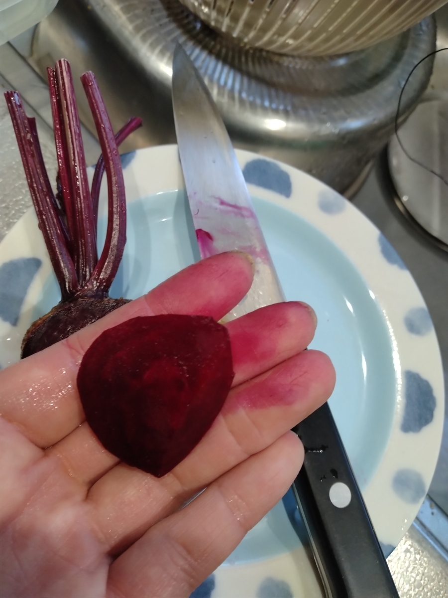 ビーツは甘く食べやすかった。また来年も植えたい。スライス生と、ぬか漬けにしてみました。